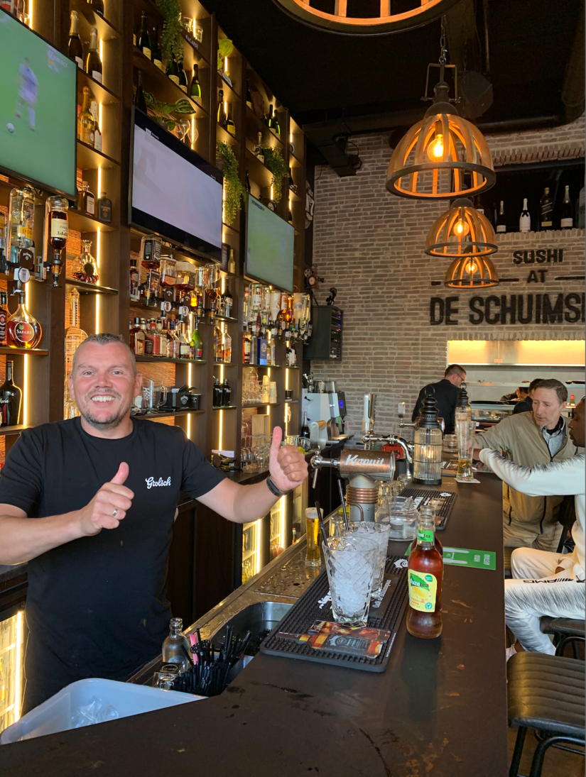 Het afgelopen jaar hebben de eigenaren van De Schuimspaan - Richard en Bilal - gebruikt om het pand een nieuw likje verf te geven. Toen ze de verbouwing net aan het afronden waren, kwam de coronacrisis om de hoek kijken en moest de horeca haar deuren sluiten. In het voorjaar werden de puntjes op de ‘i’ gezet, zodat ze bij de heropening in juni met hun nieuwe interieur konden pronken. Wellicht is dat ‘likje verf’ een beetje zacht uitgedrukt trouwens. Het eetcafé is voorzien van bakstenen muren en industriële lampen en het interieur is afgewerkt met lederen en houten meubels. Achter de royale bar staat Richard, die zijn gasten met aanstekelijk enthousiasme verwelkomt.
