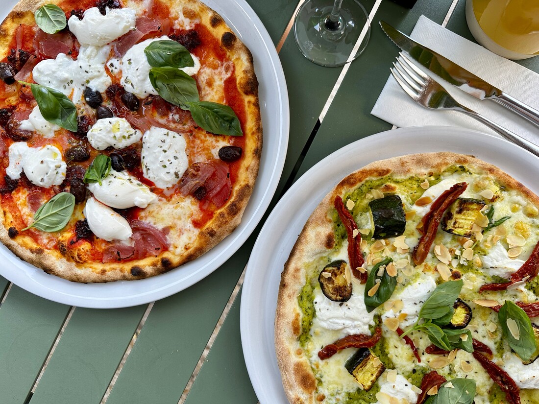 De Sophia is een groene pizza: de basis bestaat uit courgettecrème in plaats van tomatensaus. De groene saus is vol van smaak, en de zongedroogde tomaat, courgette, amandel, basilicum, mozzarella en ricotta geven de pizza een eigen karakter. De luchtige en lichte bodems van de pizza’s zorgen ervoor dat wij ze in een oogwenk soldaat maken, vergezeld door een fruitige chardonnay.
