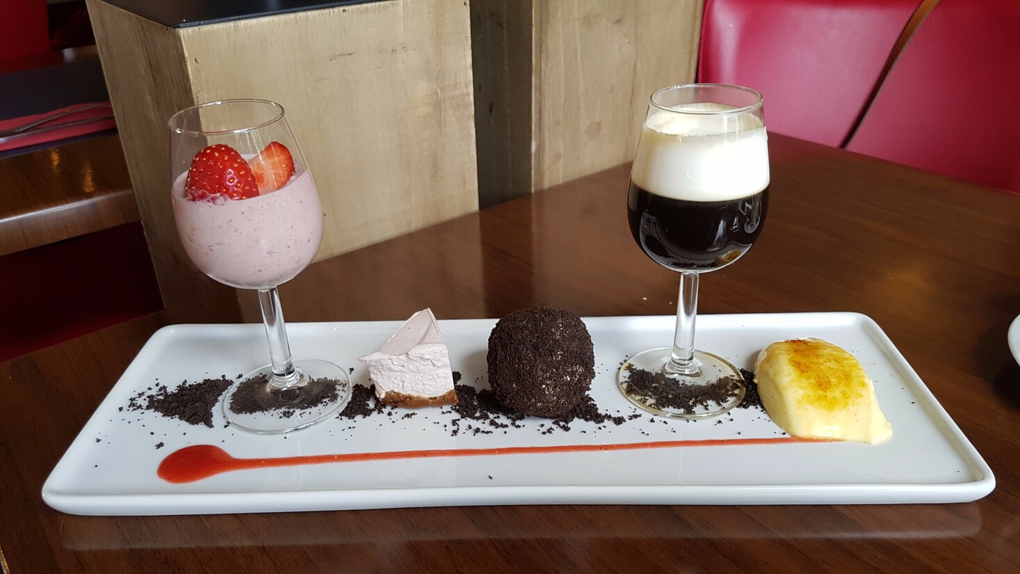 Als ik ergens over zou moeten klagen, dan zou ik klagen over het feit dat mijn maag te snel vol was en ik niet nog meer kon eten. Gelukkig is er altijd ruimte voor een toetje. Een wijs man zei ooit, dat komt omdat toetjes naar je hart gaan en niet naar je maag. Panna cotta, cheesecake met amarenen, crème brûlée, oreo-ijs dat smaakt naar alles wat je lief is en Spaanse koffie.