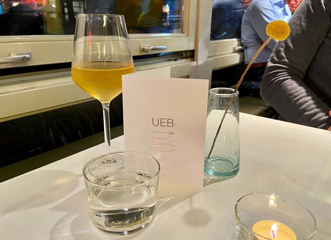 We pakken de menukaart erbij om te zien wat we geserveerd zullen krijgen. Ook nu nog blijft dit een verrassing, want alleen de dranken en de hoeveelheid gangen staan hierop vermeld. We kijken reikhalzend uit naar wat de avond gaat brengen.