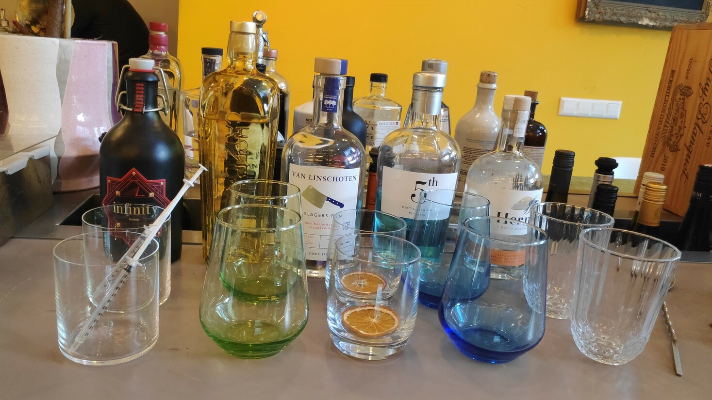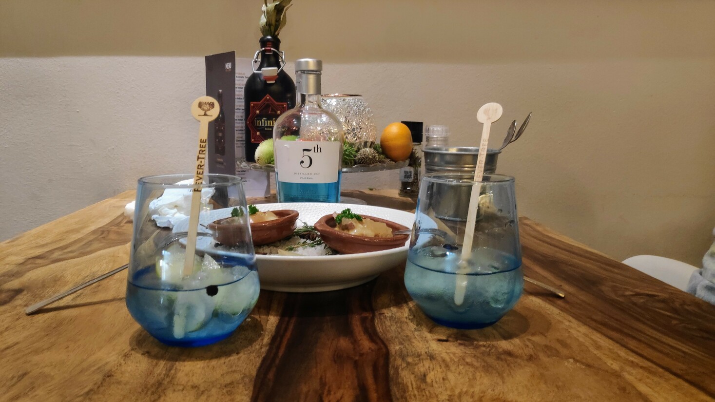 Met deze geschiedenisles in het achterhoofd, nemen we je mee naar de Oudedijk in Rotterdam. Daar zit Bomm Bar Bistro. En Bomm heeft een nieuw concept. Geen drankjes die worden aangepast op je menu, maar andersom. En dat met gin-tonics. Dat houdt in: vijf gin-tonics met vijf bijpassende gerechtjes, voor €45,-.
