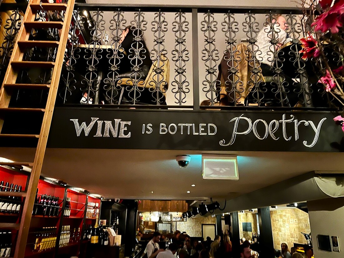 Bij een wijnbar denken wij niet gauw aan het feit dat je daar ook kunt dineren, maar we laten ons graag het tegendeel bewijzen en stappen op een vrijdagavond vol goede moed naar binnen. De zaak bestaat uit een enorme bar met aan elke muur flessen wijn. Hoge tafeltjes voorin de zaak, afgewisseld met een restaurantgedeelte met lage tafels achterin. Vanaf de bovenverdieping heb je goed zicht op de bar en het terras. Zodra wij kenbaar hebben gemaakt aan sommelier Casper van Welzen, die inmiddels negen jaar bij Het Eigendom werkt, dat wij ons graag laten verrassen, kan de pret beginnen.