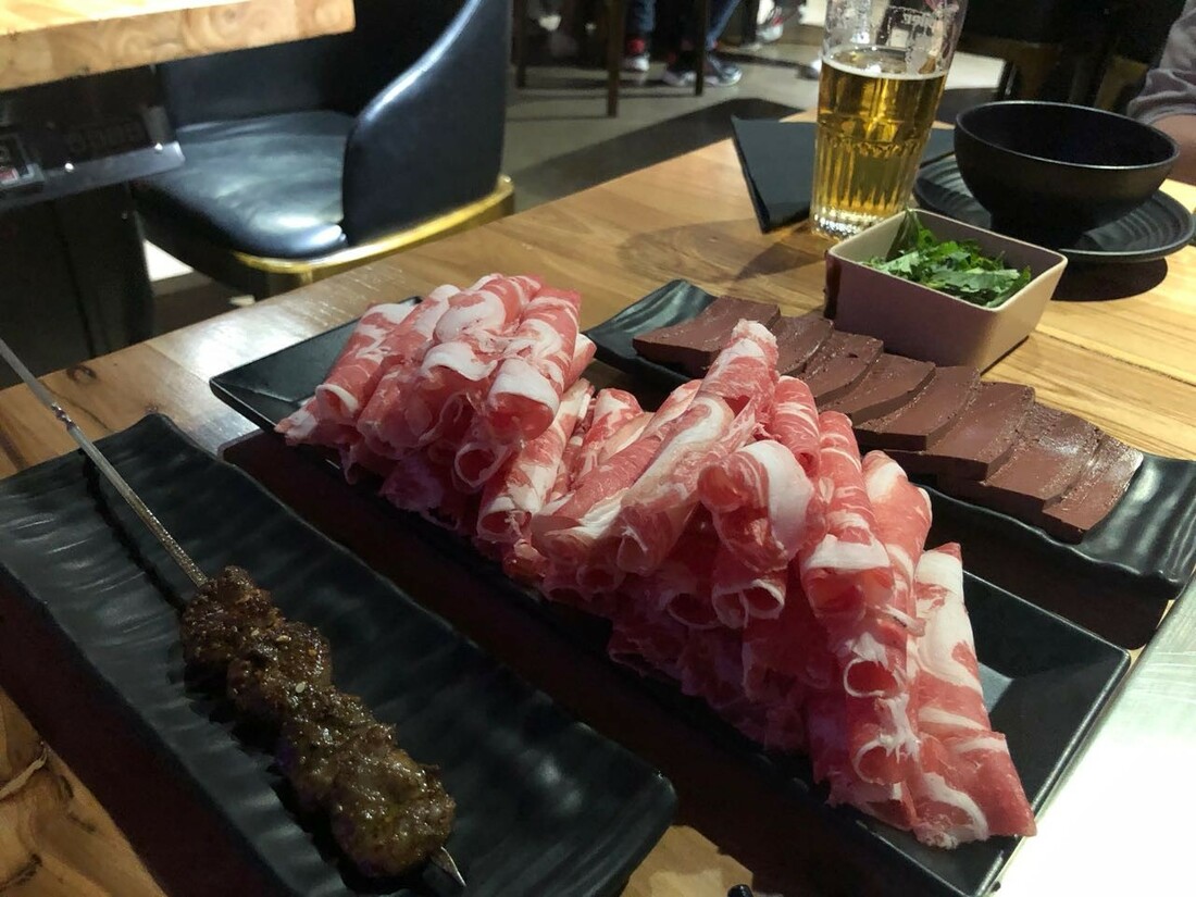 Naast hotpot serveert Yuguo ook grill spiesjes. Hiervan hebben we alleen de kippenhartjes geprobeerd, die heerlijk gekruid zijn met onder andere komijn. Op aanraden van Jim zijn we op een zaterdag teruggegaan naar Yuguo om hier meer van te proberen. We proberen dan onder andere de runderpees spies, die helemaal niet pezig maar juist zacht plakkerig is. En voor de hotpot eten we die zaterdag, waarop het inderdaad een stuk drukker is in de zaak, geweldig zachte ossenhaas en mooie grote garnalen. Bij Yuguo is er dus genoeg te ontdekken en proberen!