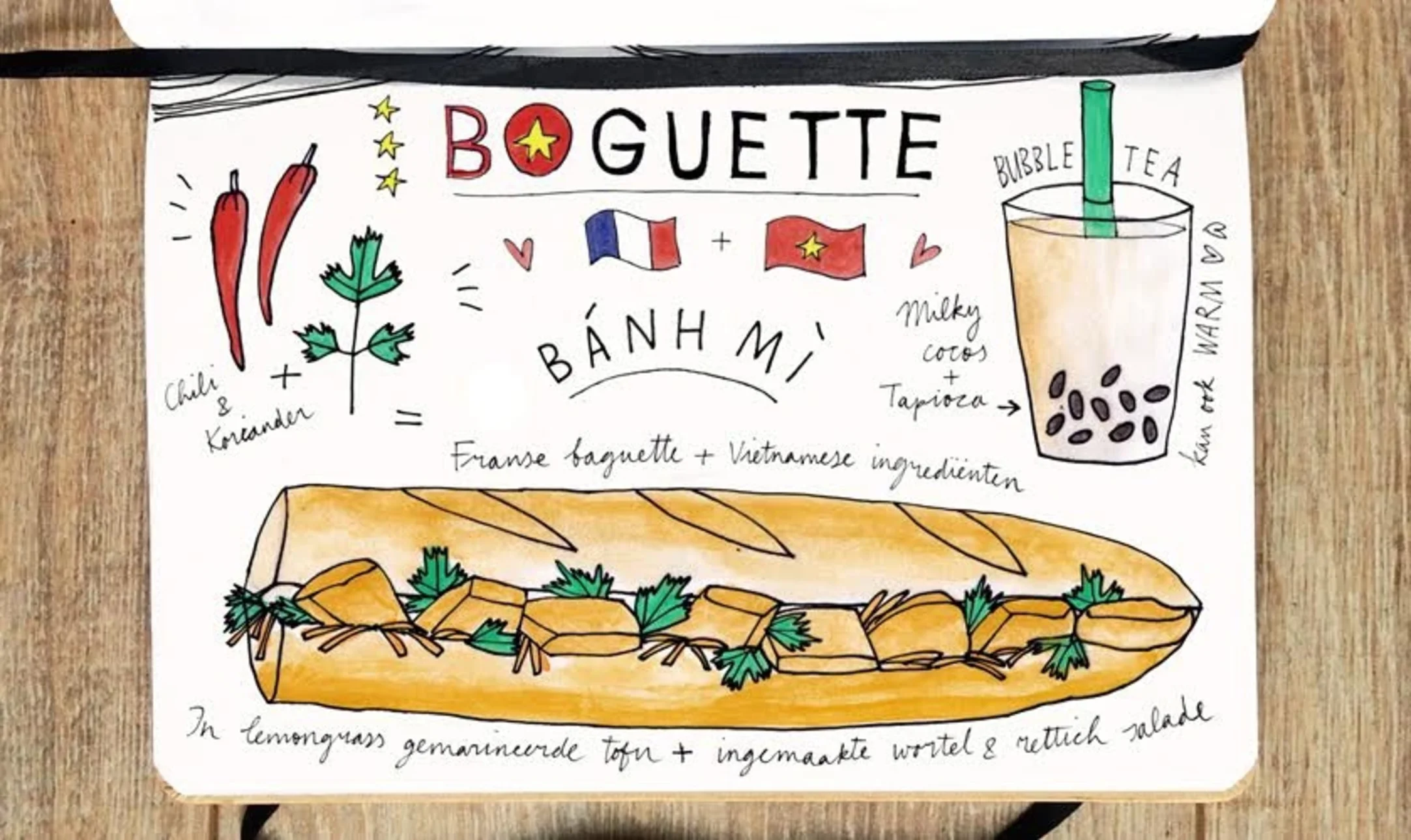 Vietnamezen verkopen niet alleen loempia's in stalletjes, ze hebben ook snackbars, zoals Boguette. Een banh mí gaat het vaakst over de toonbank.