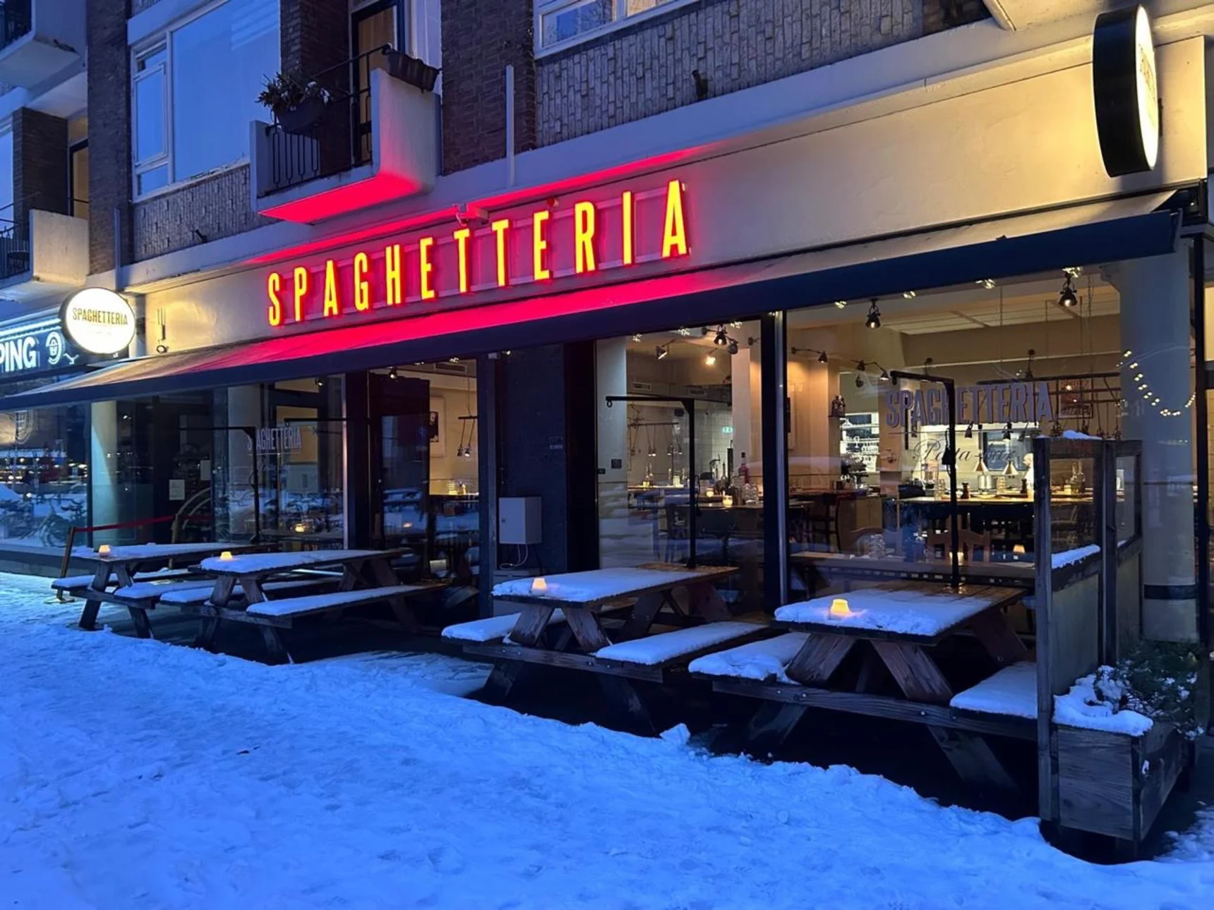 De tweede vestiging van Spaghetteria, aan de Pannekoekstraat, in Rotterdam voelt vertrouwd aan met de lange tafels, verse pasta's, frisse spritzen.