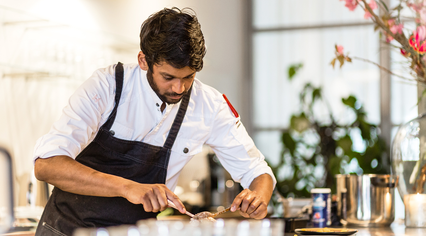 Private chef Naresh Ramdjas in actie (foto door Barbara Kieboom)