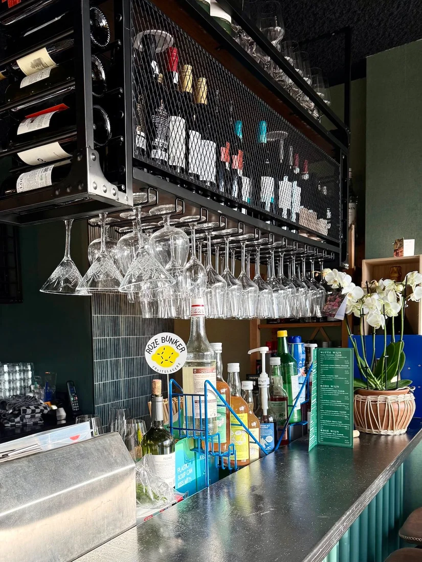 Uit ‘de buurt’ komen ook de wijnen, inclusief de alcoholvrije. Uit het indrukwekkende assortiment van buurman Henri Bloem komen zowel een champagne als een cava als stille wijnen in verschillende prijsklassen.