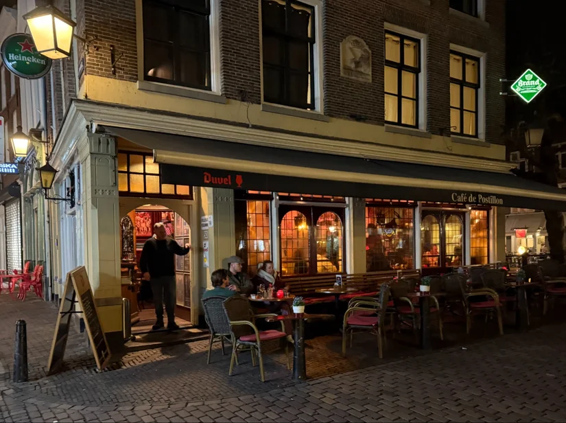 Nog zo’n klassieker onder de bruine cafés. Met glas in lood-raampjes en hoge lambriseringen. De Postillon - sinds 1973 aan de Lijnmarkt – is een echte ontmoetingsplek, een soort tweede huiskamer. Het terras met uitzicht op de Oudegracht en het winkelend publiek lijkt altijd vol te zitten.
