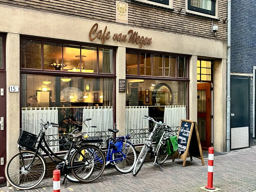 Van Wegen is een van de oudste cafés in de stad. Op een steenworp afstand van het Vredenburg, een beetje verstopt aan de Lange Koestraat, vind je dit dranklokaal uit 1883 waar de tijd stil lijkt te staan. Vitrage voor de ramen, een houten deur met gematteerd glas en een klein halletje. Achter de opvallend lage, 75 jaar oude toog staat (ook alweer 45 jaar) een echte kastelein in een keurig wit hemd, er klinkt geen muziek en het biljart neemt een centrale plek in.