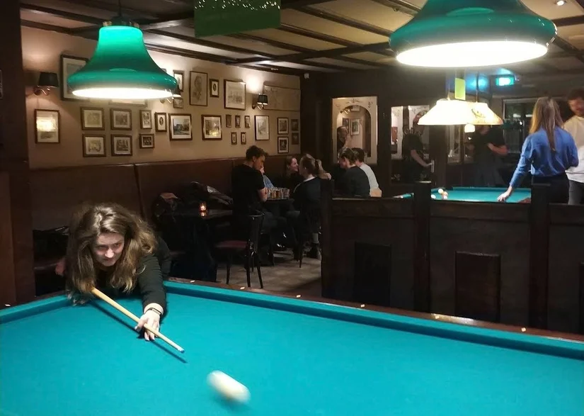 Alias: Het Stichtse. Een echt spelletjescafé, bekend onder studenten, maar ook bij biljarters, poolers en darters. Deze voormalige knopenfabriek, een beschermd stadsgezicht, staat al meer dan veertig jaar tussen de huizen, horeca en winkels van de Twijnstraat. Achterin, op het bescheiden terras, heb je uitzicht op de gracht.