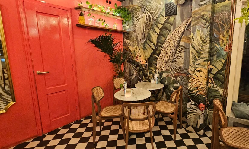 Planten kun je nooit te veel hebben. Ook sommige muren zijn behangen met afbeeldingen van flora en fauna. Je krijgt het gevoel dat je in een tuin zit: hoe toepasselijk in Tuinwijk. Het is ook lekker licht en dankzij de grote ramen heb je goed zicht op wat zich buiten afspeelt.