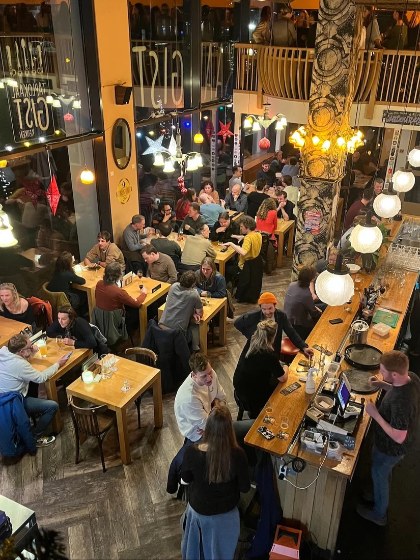 Gist is er niet alleen voor de borrel. Het taplokaal noemt zichzelf het ‘beste bier-restaurant van Utrecht’ en heeft een menu dat elke drie maanden wordt vernieuwd. Er wordt gewerkt met seizoensproducten en liefhebbers kunnen de gerechten combineren met een van de vele craftbieren van de tap.
