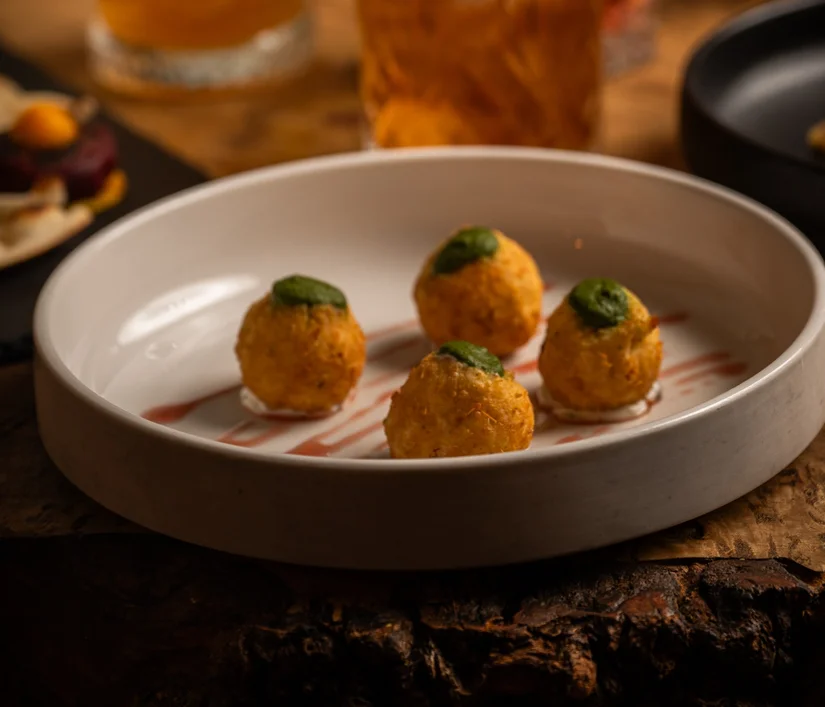 De Tropical Cauliflower Bites worden warm aanbevolen door Nana. Terecht, blijkt bij de eerste hap. De bloemkoolroosjes zijn gecoat in een heerlijke chili-garlic glaze. Verder proeven we de crispy fish bites, geïnspireerd op de keuken van het Zuid-Indiase Goa, waar de Portugese invloeden nog steeds aanwezig zijn. De vis is krokant van buiten en zacht van binnen. De zoetige tamarindedip past er goed bij.
