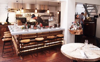 Of we die bezieling daadwerkelijk proeven? Laten we beginnen met de sfeer in het restaurant van Victor Stukker en Joyce Belderman dat minder ‘petit’ is dan we hadden gedacht. Er is zelfs een vide die vanavond stampend vol zit. De benedenverdieping, rond een open keuken waar je kunt aanschuiven tussen de glazen fermentatiepotten, heeft een minimalistische, maar warme inrichting.